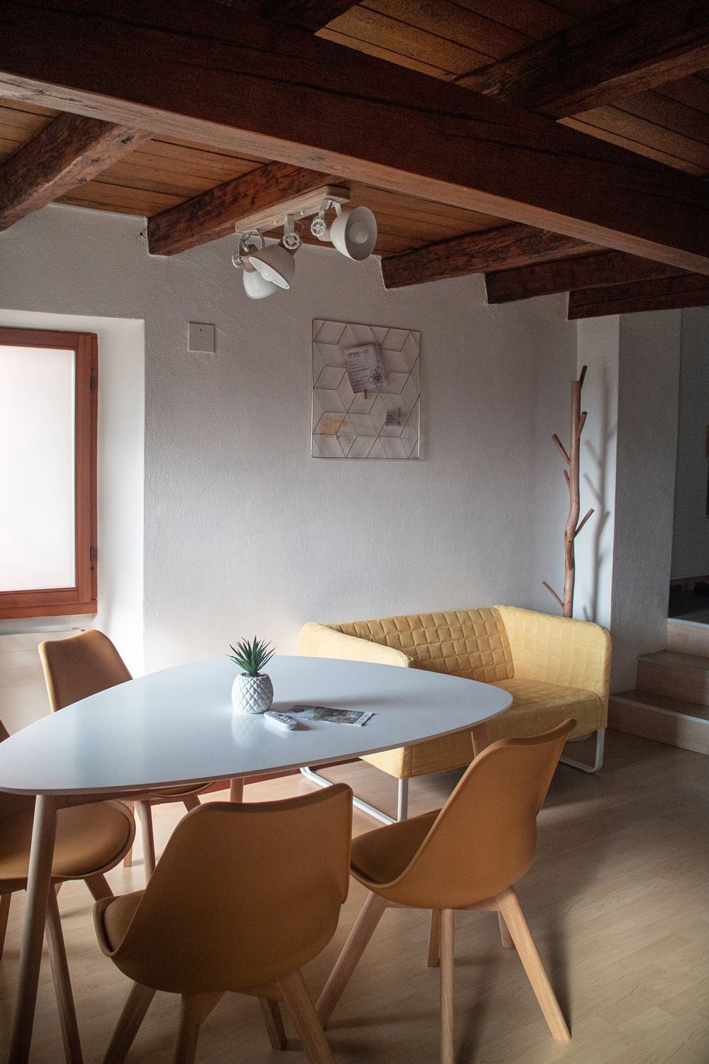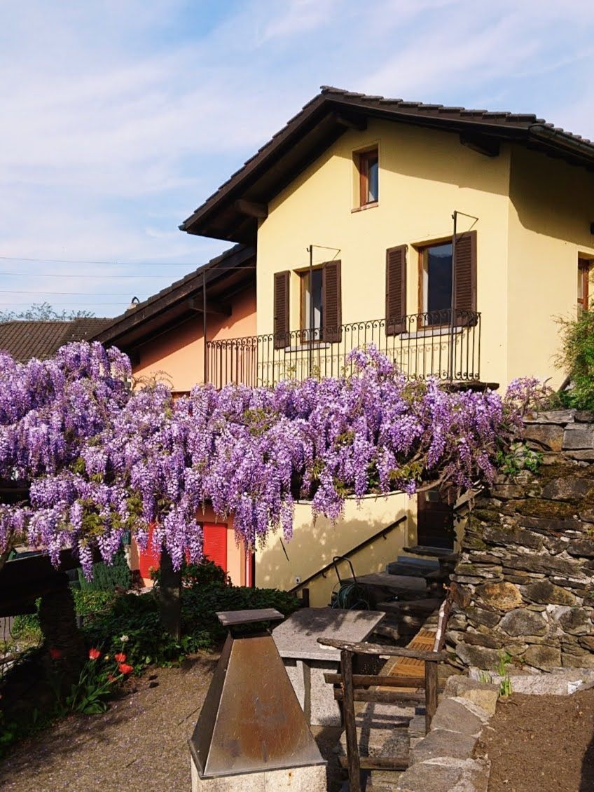 Wisteria House is a rustic apartment located in the old centre of Cadenazzo and enjoys a wonderful view of the Magadino plain and the Locarno region. The guest will have a bedroom, a mezzanine with a bed, a complete kitchen, a dining room, a bathroom with bathtub, a toilet and can accommodate up to 4 persons. Bed linen, towels, and starter set included in the price. Washing machine available. TV and Wifi. Inside the apartment there are two quite steep stairs.